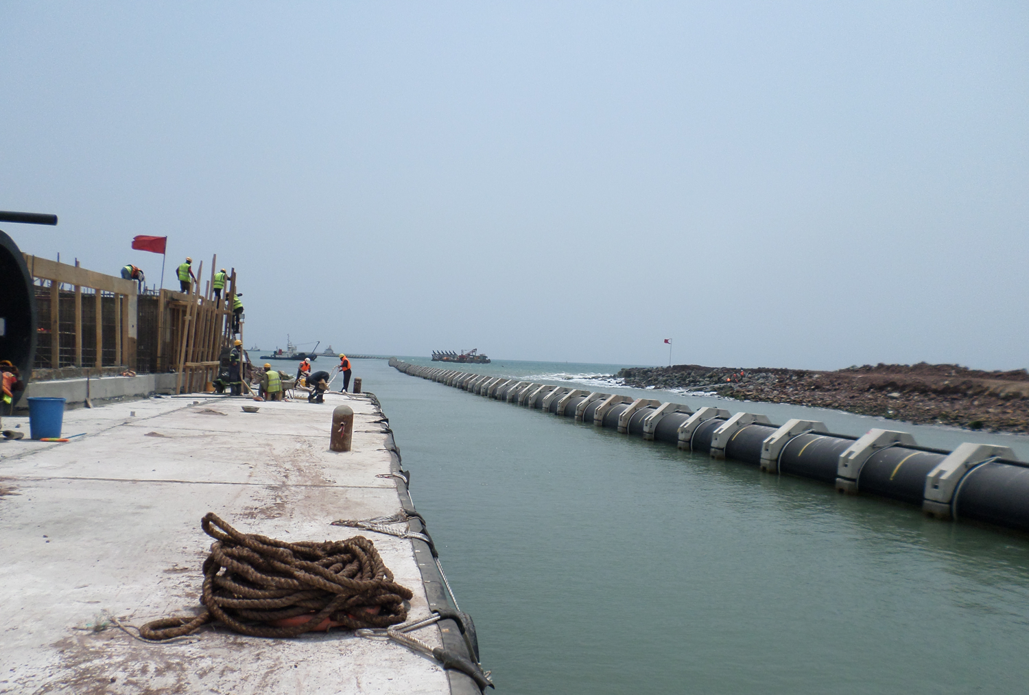 We focused on successful completion by fighting against the inferior conditions in the project site. To overcome the difficulty in cement supply, we built concrete structures using portable mixer trucks. In particular, it was an extremely difficult task to install the HDPE pipes measuring 2.5 m in diameter amid the violent waves of the Atlantic Ocean. With our strong will, however, we successfully installed the pipes for a total extension of 8.8 km.
