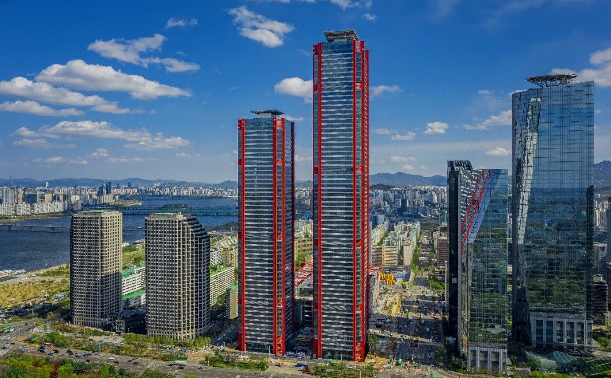 Measuring 318 m at the highest point, this complex consists of two office towers, each with 69 and 53 floors, a hotel (30 floors), and a commercial facility (8 floors). With its construction completed in July 2020, Yeouido Parc.1 became the third tallest building in Korea following Haundae LCT (411 m).