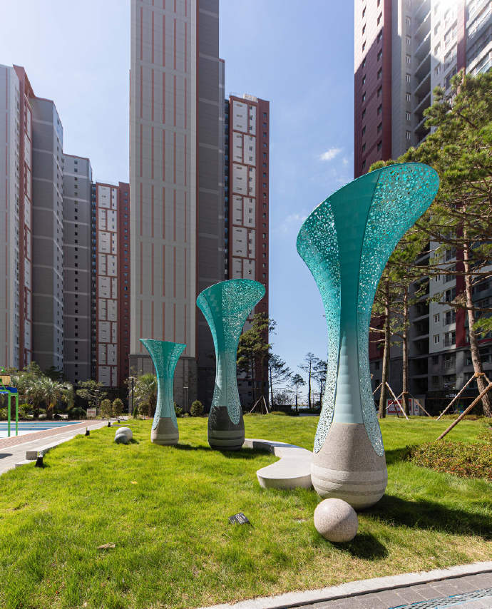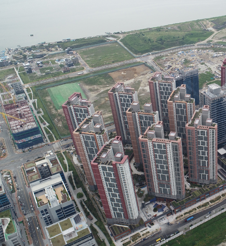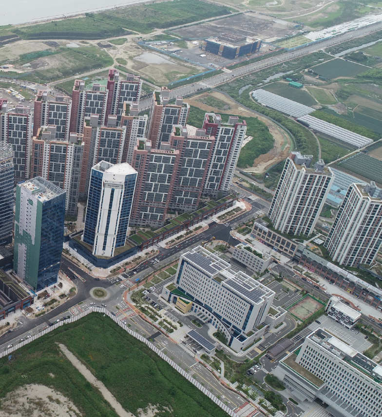 Myeong-ji The Sharp First World is located in Myeongji International New Town. This large-scale complex with 3,196 household units consists of 20 apartment buildings (2,936 units) and one studio apartment building (260 units). Equipped with community facilities ranging from a sauna, a screen golf & indoor golf practice range, and a fitness center to a book cafe and a guest house, Myeong-ji The Sharp First World is recognized as a residential complex that represents Myeongji International New Town.