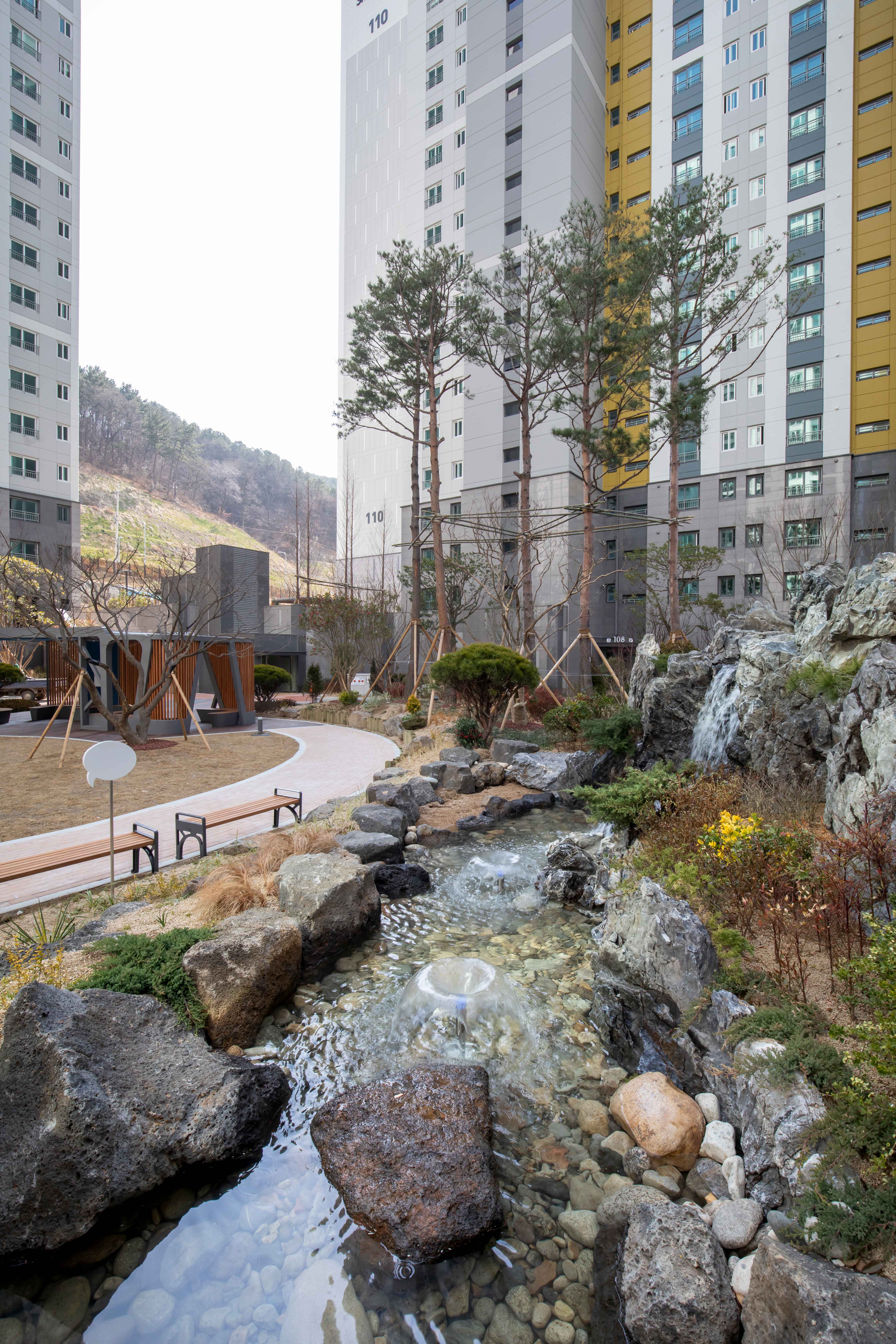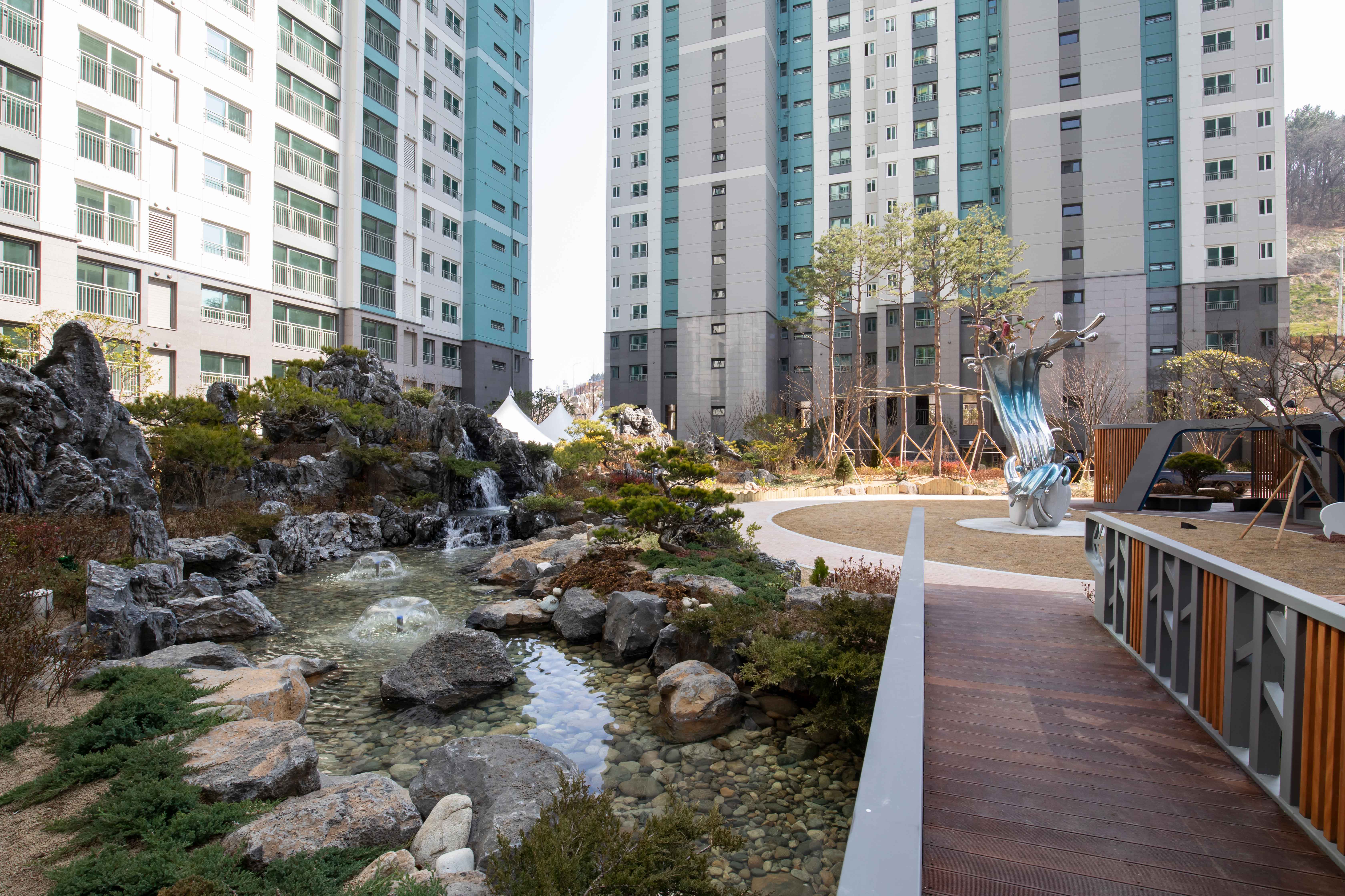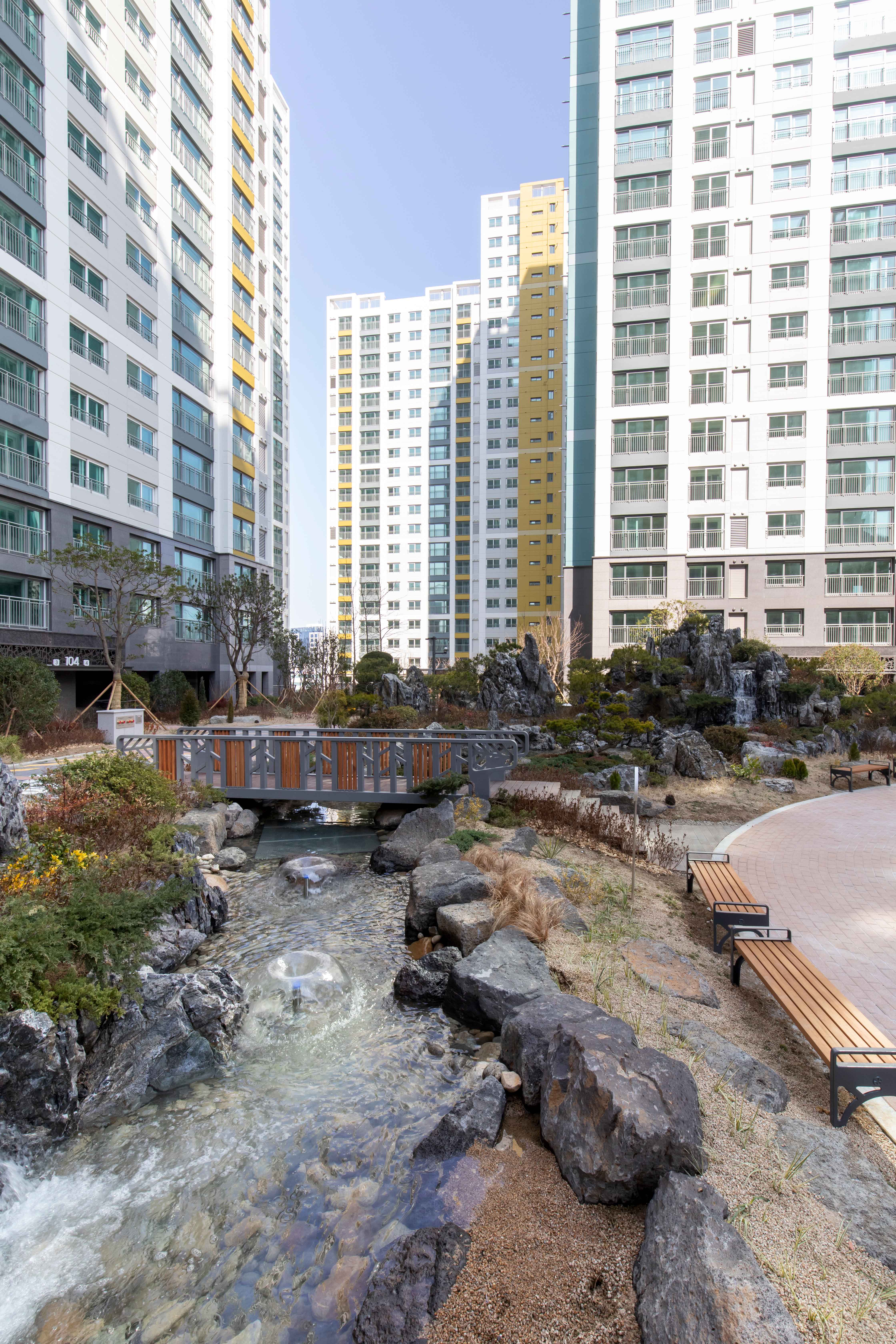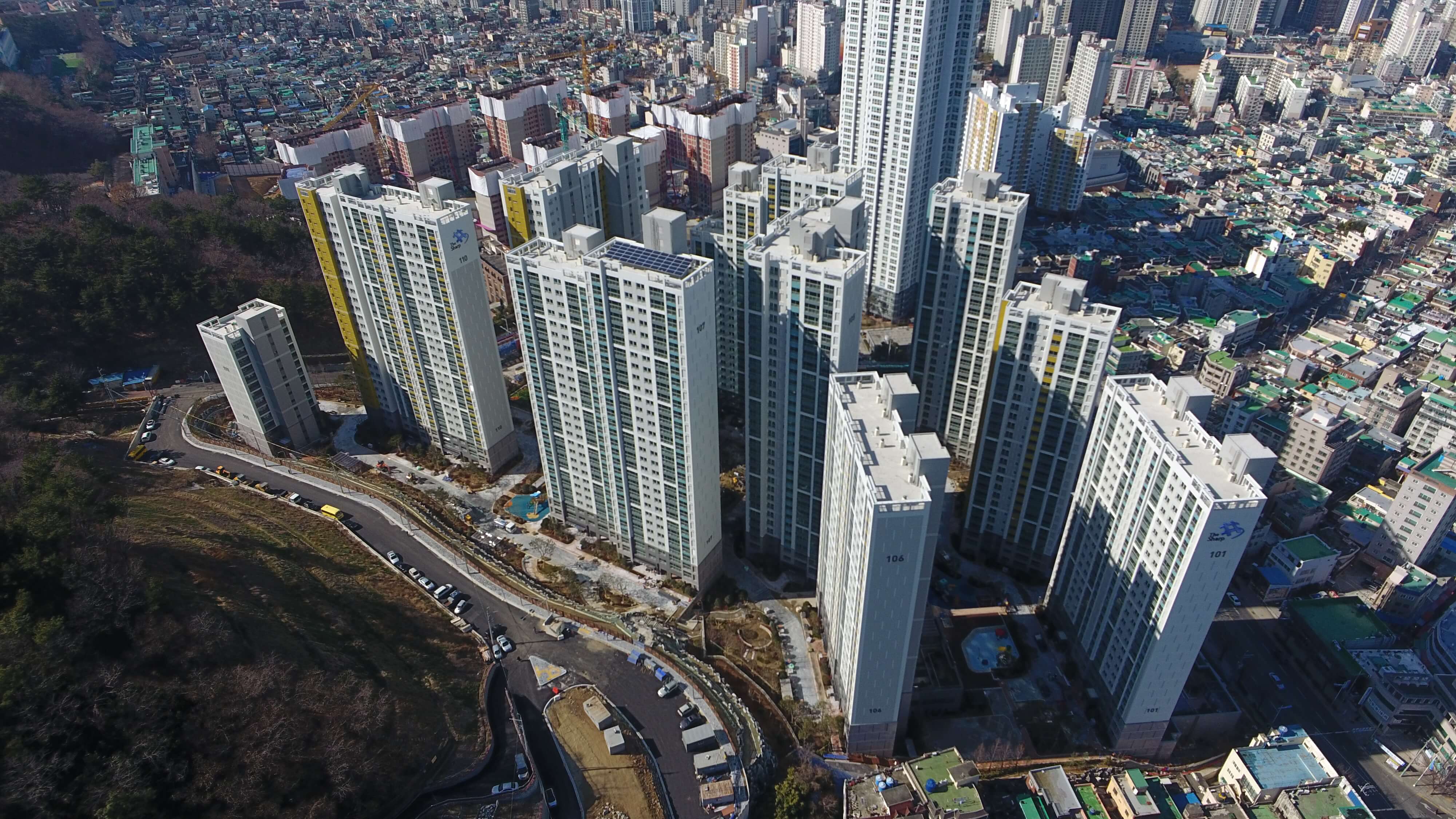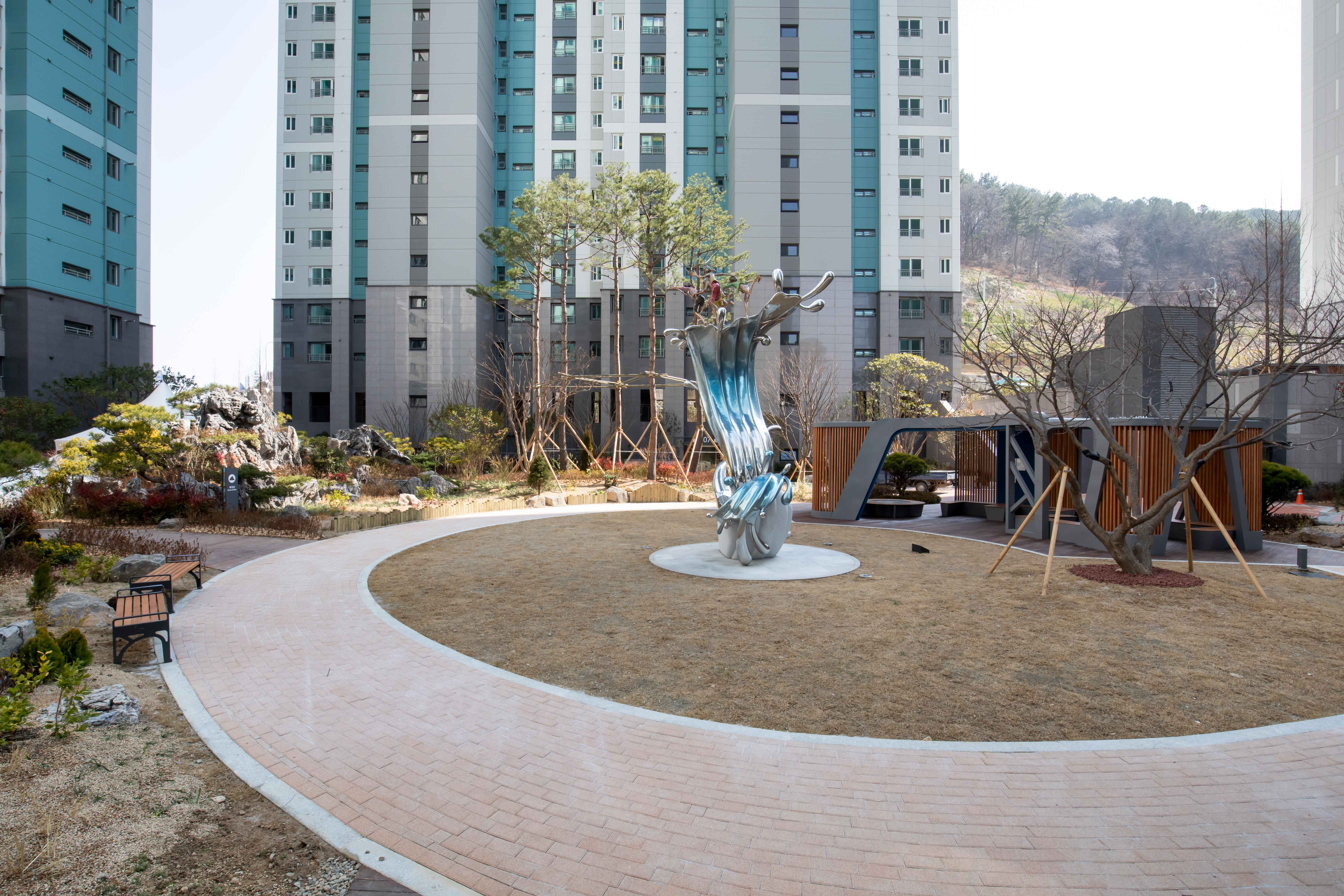 Yeonsan The Sharp was constructed as a project of redeveloping Yeonsan District 2 in Yeonje-gu, Busan. The complex has total 1,071 household units in 11 buildings with 4 floors underground and 30 floors above ground. Located at the foot of Hwangnyeong Mountain, the complex provides a pleasant living environment with various amenities nearby, such as transportation, education, and public offices. There is also Busan Subway Line 3 Mulmangol Station nearby, as well as buses with many routes for quick and convenient mobility around Busan. The households mostly face south, which help maximize natural lighting and ventilation. There is a central plaza in the middle of the complex, along with a small garden and walkways in various spots, providing a pleasant living environment.