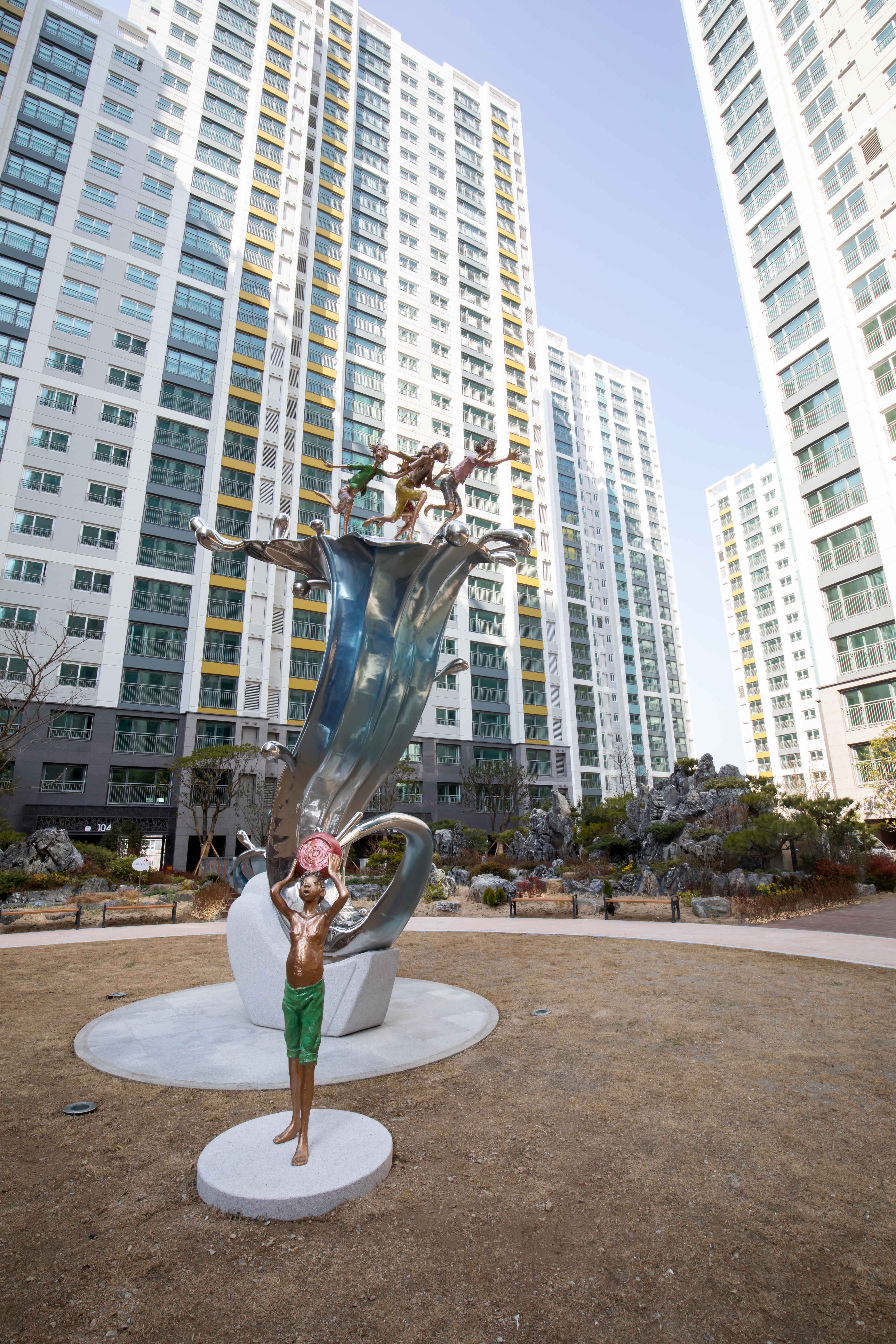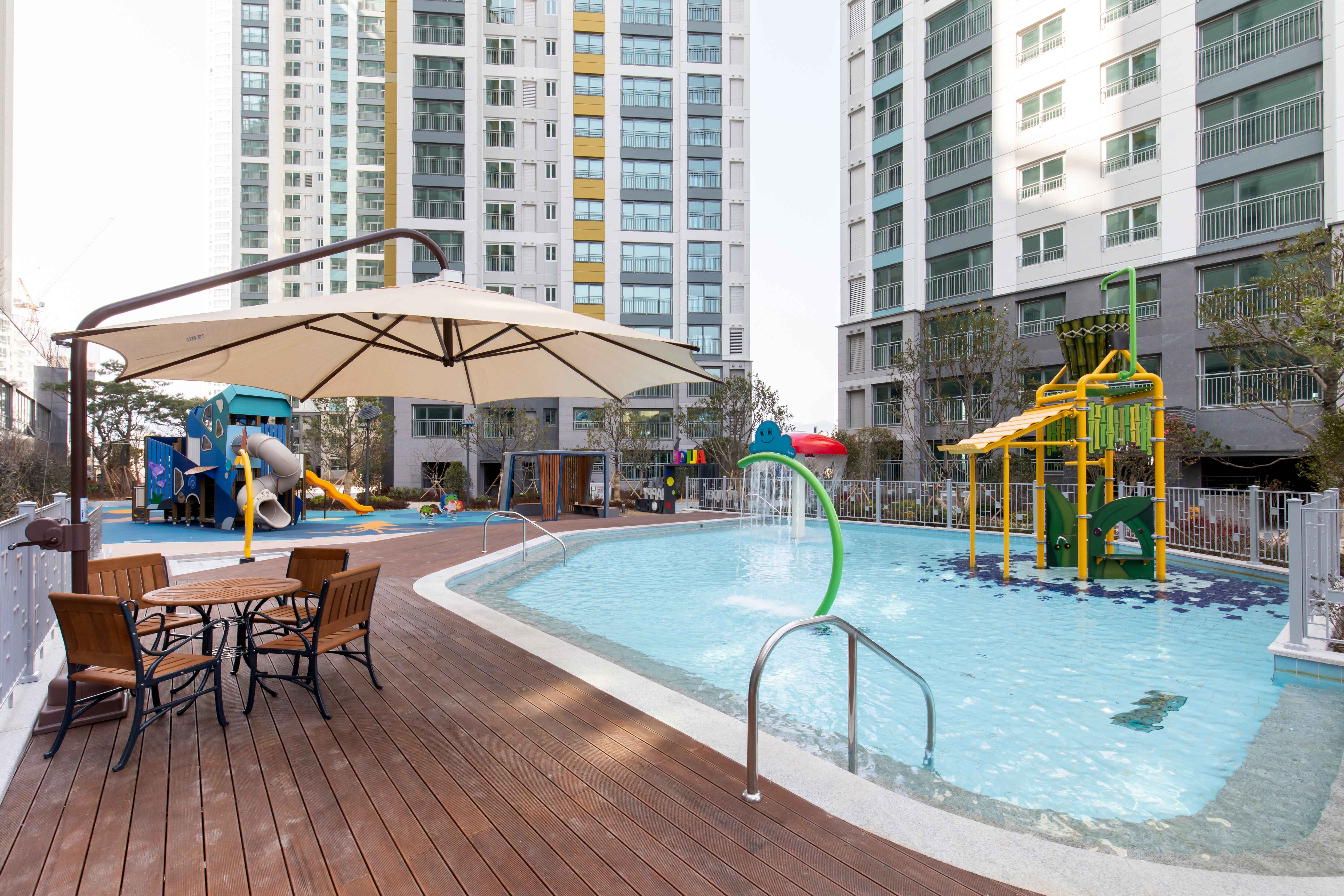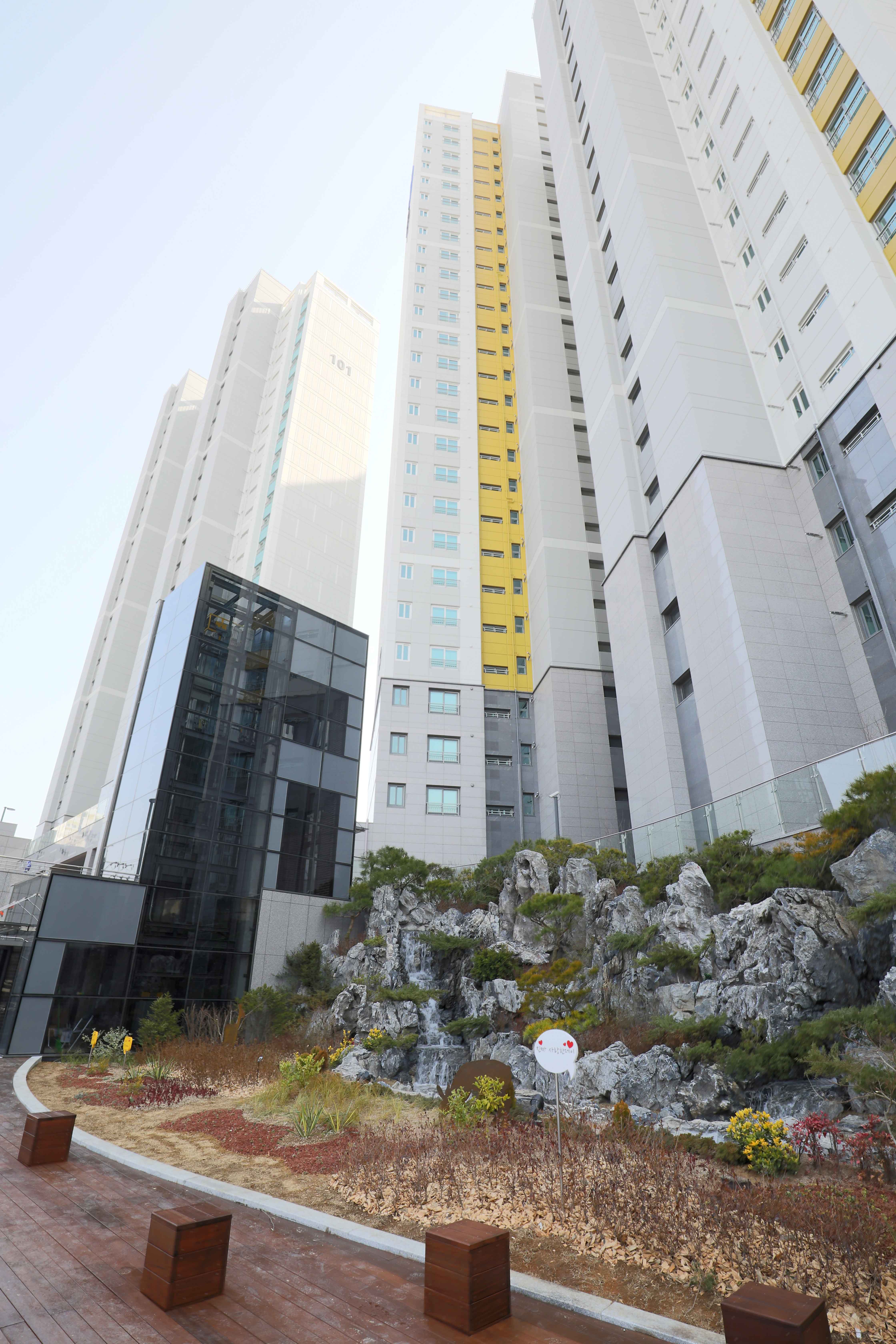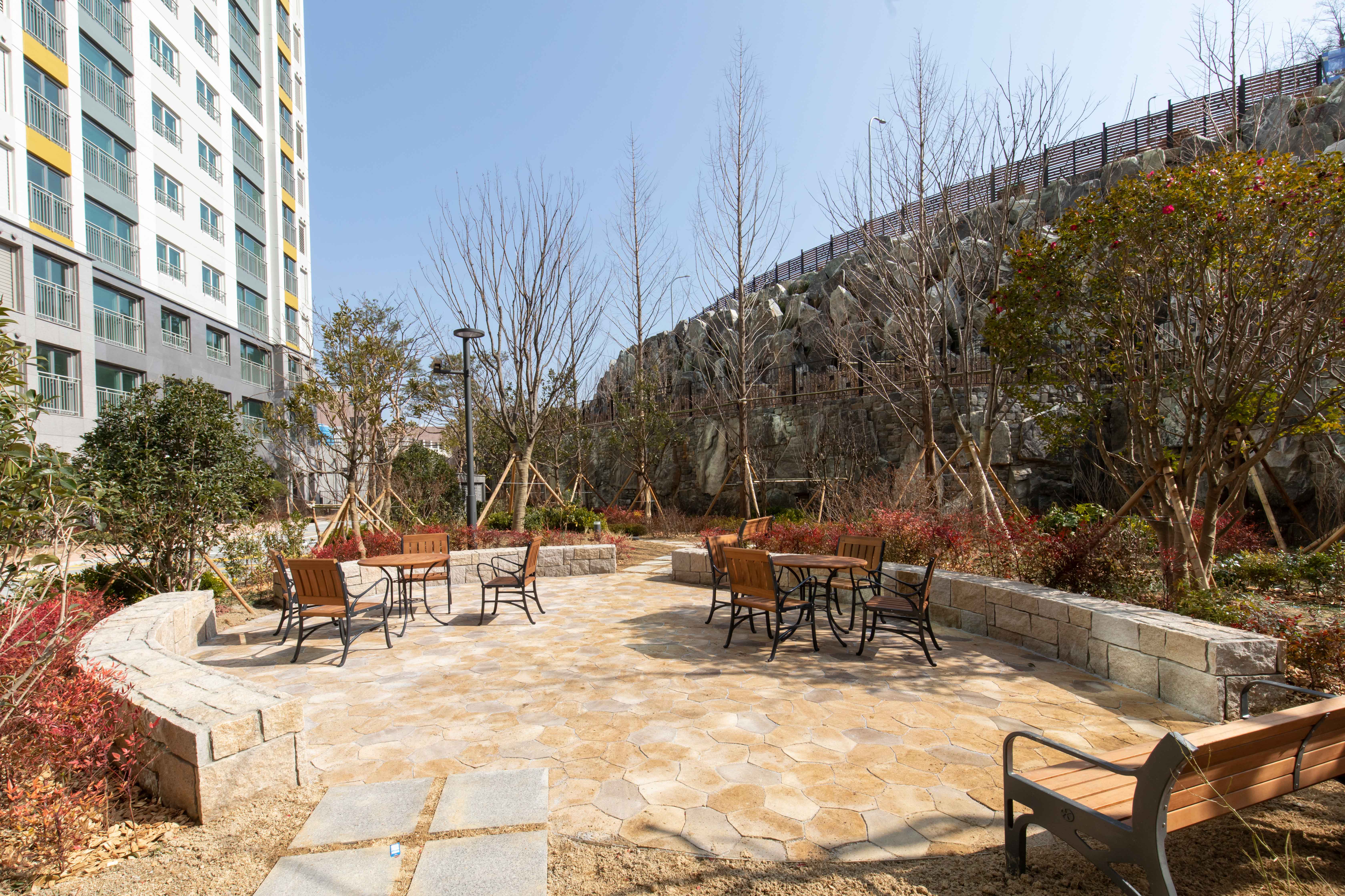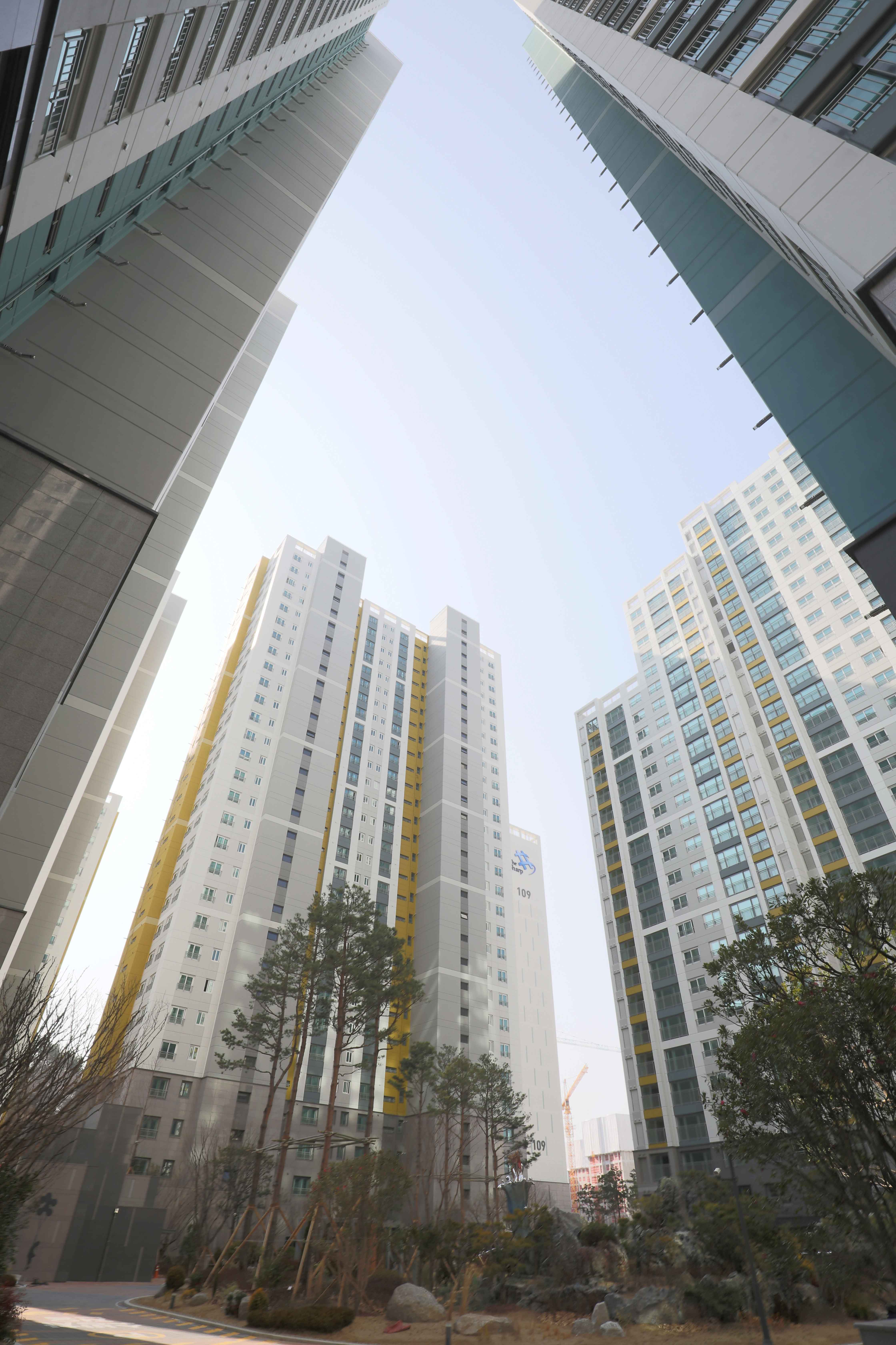 Yeonsan The Sharp was constructed as a project of redeveloping Yeonsan District 2 in Yeonje-gu, Busan. The complex has total 1,071 household units in 11 buildings with 4 floors underground and 30 floors above ground. Located at the foot of Hwangnyeong Mountain, the complex provides a pleasant living environment with various amenities nearby, such as transportation, education, and public offices. There is also Busan Subway Line 3 Mulmangol Station nearby, as well as buses with many routes for quick and convenient mobility around Busan. The households mostly face south, which help maximize natural lighting and ventilation. There is a central plaza in the middle of the complex, along with a small garden and walkways in various spots, providing a pleasant living environment.