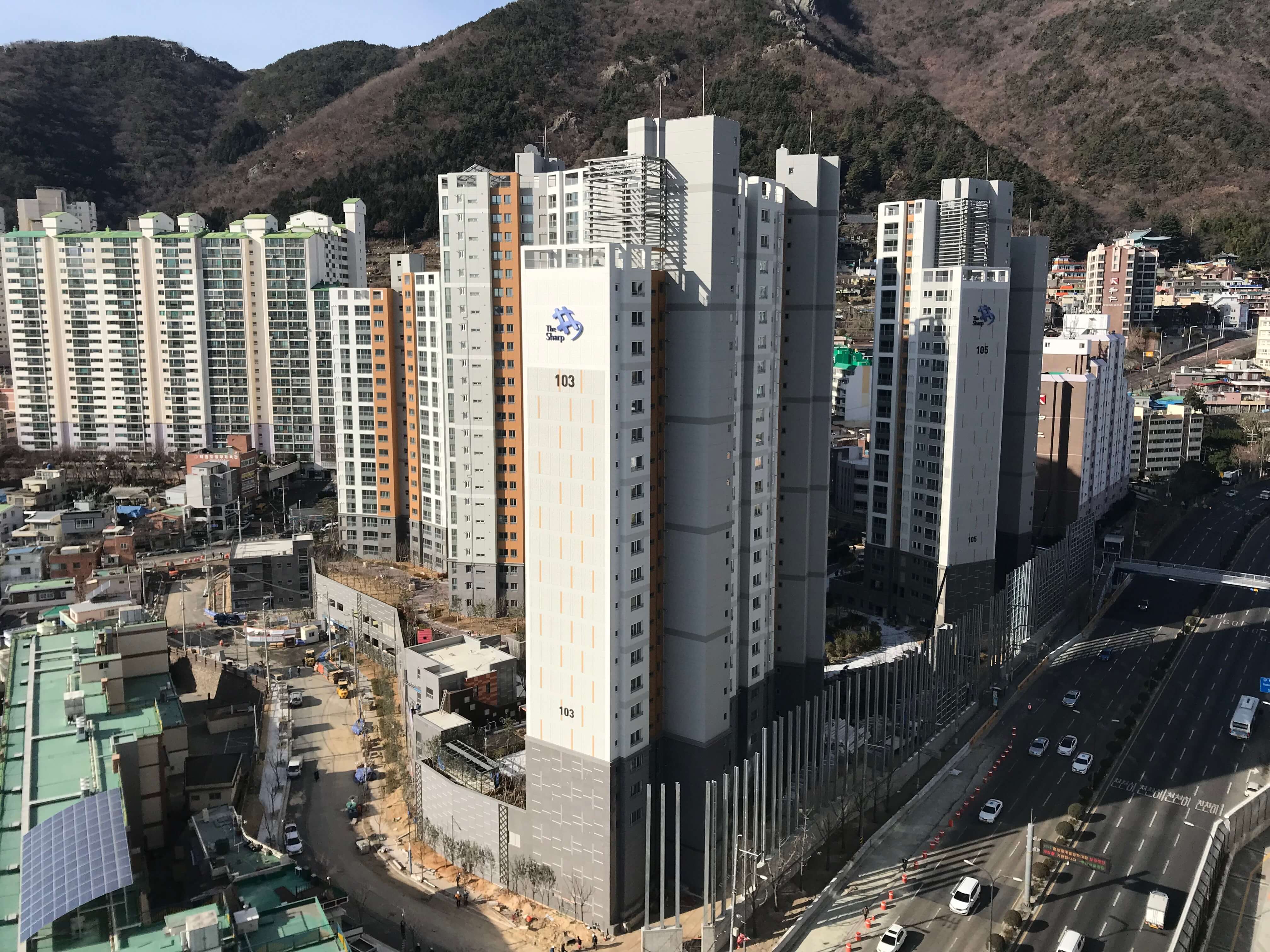Daesin The Sharp was constructed as a redevelopment project in 117, Seodaesindong 3(sam)-ga, Seo-gu, Busan. It is comprised of 429 household units in 5 buildings with 3 floors underground and 24 floors above ground. The area has elementary, middle and high schools, a big hospital, a sports complex, and Jungang Park located nearby, offering great access to all kinds of facilities.