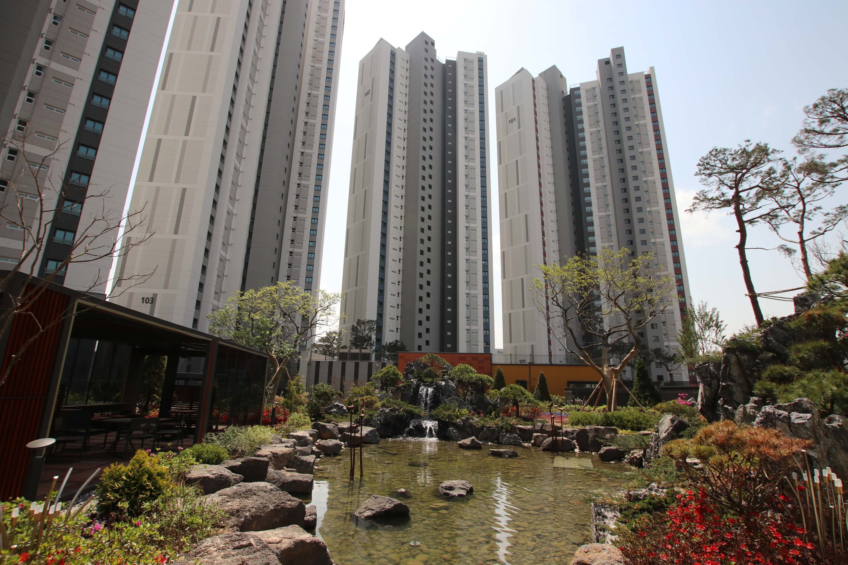 Uiwang The Sharp Castle is located in 52, Ojeon-dong, Uiwang-si, Gyeonggi-do, and is comprised of 941 household units in 8 buildings with 3 floors underground and 38 floors above ground. The households are mostly facing south, maximizing natural lighting and ventilation. There are many rest areas around the complex, such as theme parks and playgrounds. Elementary, middle and high schools are also located nearby, along with a hypermarket and an expressway for convenience.