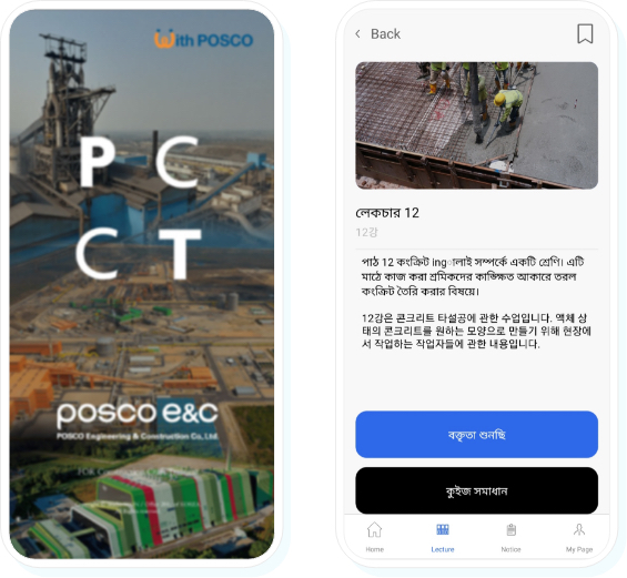 POSCO E&C has been operating a website for driving education since 2011 to assist multicultural families in getting their driver’s licenses. The platform offers video lectures for the written exam and driving test in ten different languages, including Japanese and Chinese. Through efficient utilization of the platform, we support the employment and stability of multicultural families.