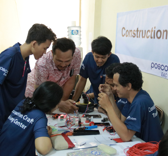 With a goal to support the self-reliance of youths in developing countries and create jobs in such regions, POSCO E&C have been operating vocational training centers that teach basic construction work, including masonry and carpentry, for youths in Myanmar, Indonesia, and other regions where our overseas sites are situated. In 2020, we developed a mobile application for skilled construction workers to train the youths in Bangladesh. 160 youths of the Matarbari region, Bangladesh participated in the training; 67 among them were acknowledged for their outstanding performance and thus were hired for the Matarbari site of POSCO E&C. In 2021, the killed construction worker training program for youths in Matarbari was selected as an Inclusive Business Solution (IBS) program of the Korea International Cooperation Agency (KOICA) for the first time among construction companies. We plan to offer online courses for the program to 500 youths in Matarbari, Bangladesh until 2022 and recruit over 300 trainees for our sites.