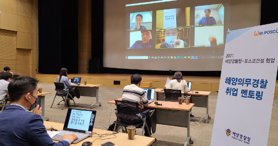 POSCO E&C has been operating a job mentoring program for university students since 2019. We partnered with Jungbu Regional Employment and Labor Office as part of our effort to solve youth unemployment and offer education for youths on designing their future and exploring their jobs. We also strive to provide support to conscripted police officers working at the Korea Coast Guard for their reintegration into society. We held a job mentoring session for the conscripted officers in 2021, where our recruitment manager shared tips on writing job applications and taking job interviews. We also had small mentoring groups to share knowledge in architectural design, civil engineering, plant engineering, R&D, and management planning, as well as other practical know-how for getting jobs.