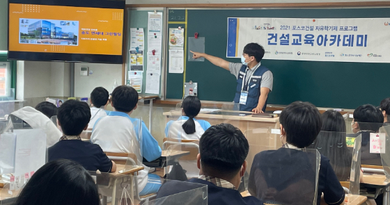 Since 2016, POSCO E&C has been offering construction education to encourage adolescents to explore their dreams. Our employees and university student volunteer group make a visit to middle schools and give lectures on the basics of construction and share their vivid experiences in construction work. As of 2020, over 13,000 students of Incheon and other regions near our construction sites have participated in this program.