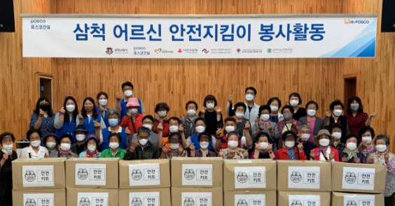 For the first time among local construction companies, POSCO E&C project sites and fire stations are jointly carrying out safety activities in connection with a 119 safety call system to prevent accidents that may occur to senior citizens. In 2021, 15 of our sites and 12 fire stations are conducting daily safety education for 700 senior citizens and distributing safety supplies, such as wristbands that are linked to the 119 safety call system and anti-slip mats.