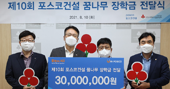 Since 2012, as part of developing our future generation, POSCO E&C has been providing Dream Tree Scholarships for the teenagers of low-income families to back their learning activities. In 2021, we gave out scholarships of KRW 30 million in total to 35 students in Incheon and Pohang, aiming to support their dreams and hopes.