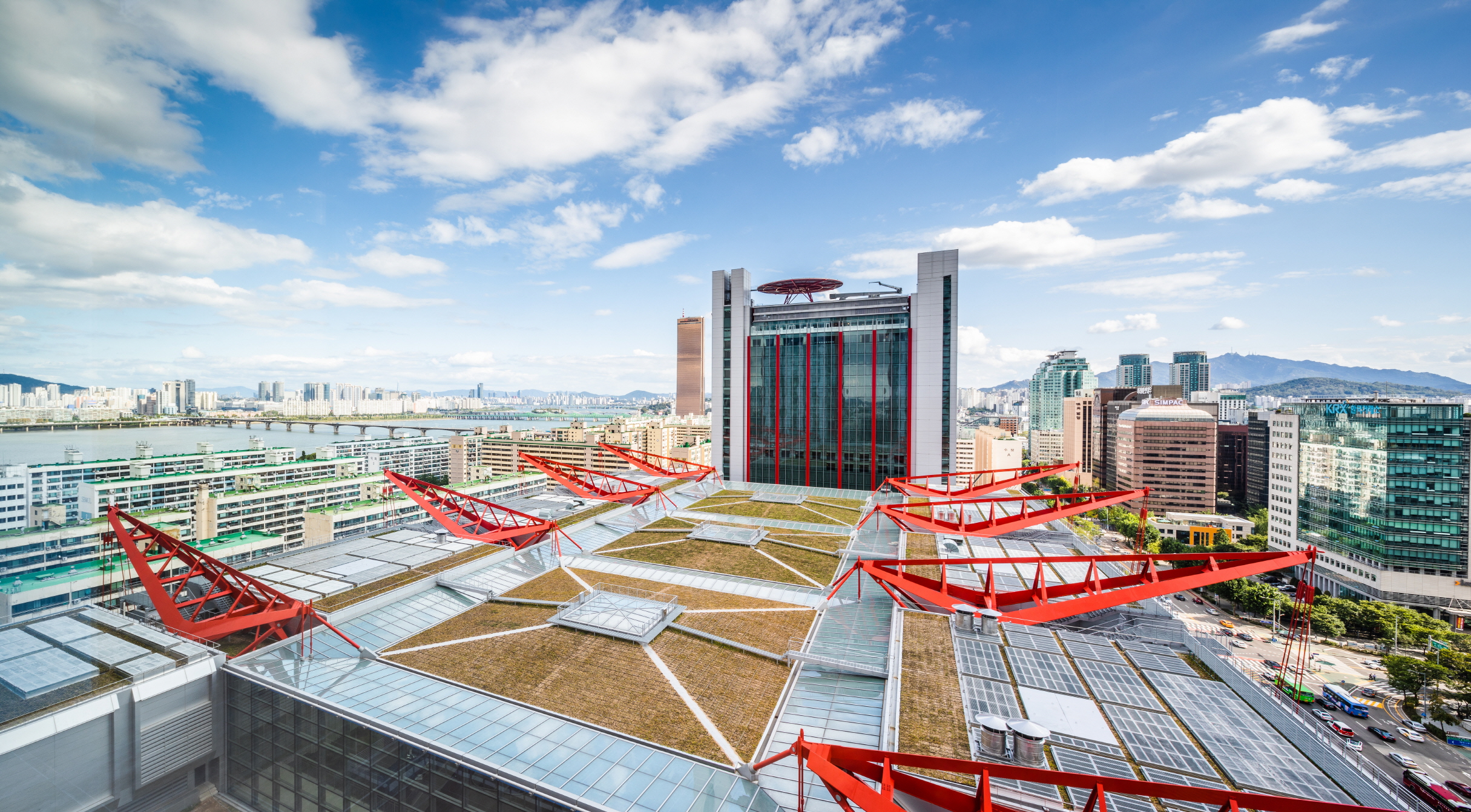 세계적인 건축가 리처드 로저스가 설계한 파크원 건축의 디자인의 특징으로 한국 고유의 붉은 단청색으로 치장한 기둥은 하늘로 곧게 뻗은 형상으로 미래를 향한 한국민의 기상을 잘 표현한 것이라 여겨집니다.