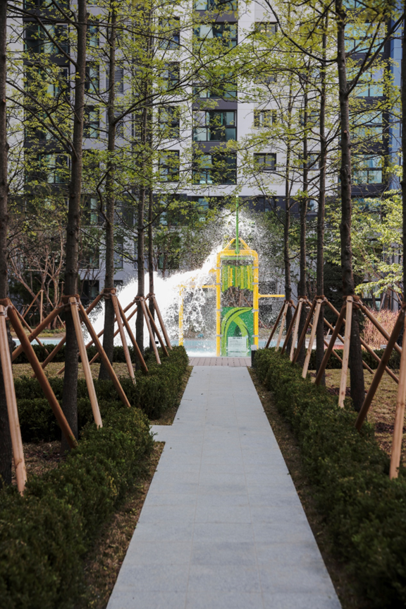 전 세대가 어우러지는 조경 설계를 통해 대규모 잔디광장 '더샵필드'를 조성하여 탁 트인 개방감을 제공하고, 야외에서 저녁을 함께 할 수 있는 공간인 '더샵가든&다이닝하우스'와 반려견과 함께할 수 있는 '펫가든', 어린이 물놀이장 등 다양한 여가 활동 공간을 마련하여 입주민들이 편안하게 즐길 수 있도록 설계했습니다.
