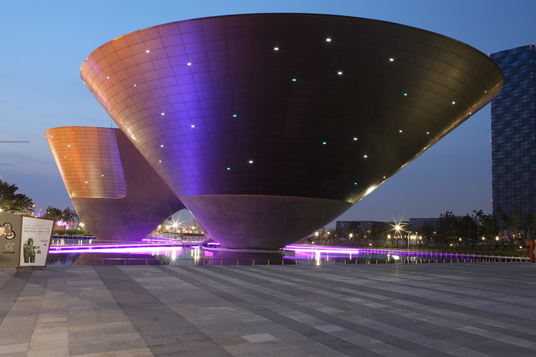 포스코이앤씨가 시공한 트라이보울(Tri-Bowl)은 지역문화 진흥과 시민의 문화 향유를 위한 복합문화공간으로, 인천 송도국제도시의 중심인 송도중앙공원에 위치한 명소입니다.