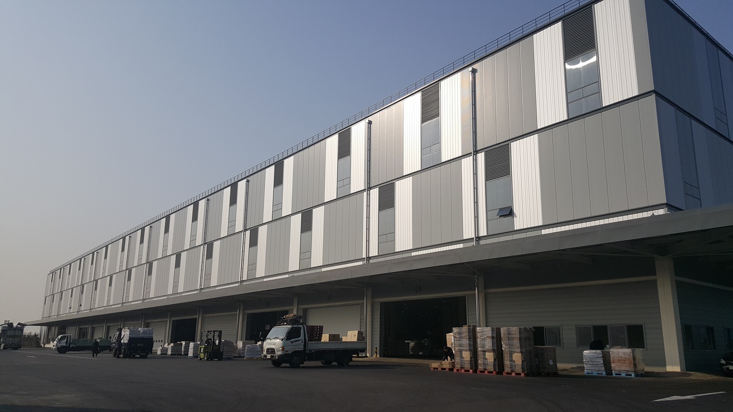 용인 남사면 북리 물류센터는 연면적 약 8만㎡, 지하 1층~지상 5층 규모의 최신식 냉동・상온 보관 시설입니다. 화물 엘리베이터를 이용하지 않고 화물을 차량에 직접 실을 수 있는 하역장을 전층에 마련하였고, 하역장 최대 폭을 동일한 규모의 물류센터보다 더 길게 구성하여 신속한 물류 이동이 가능합니다.