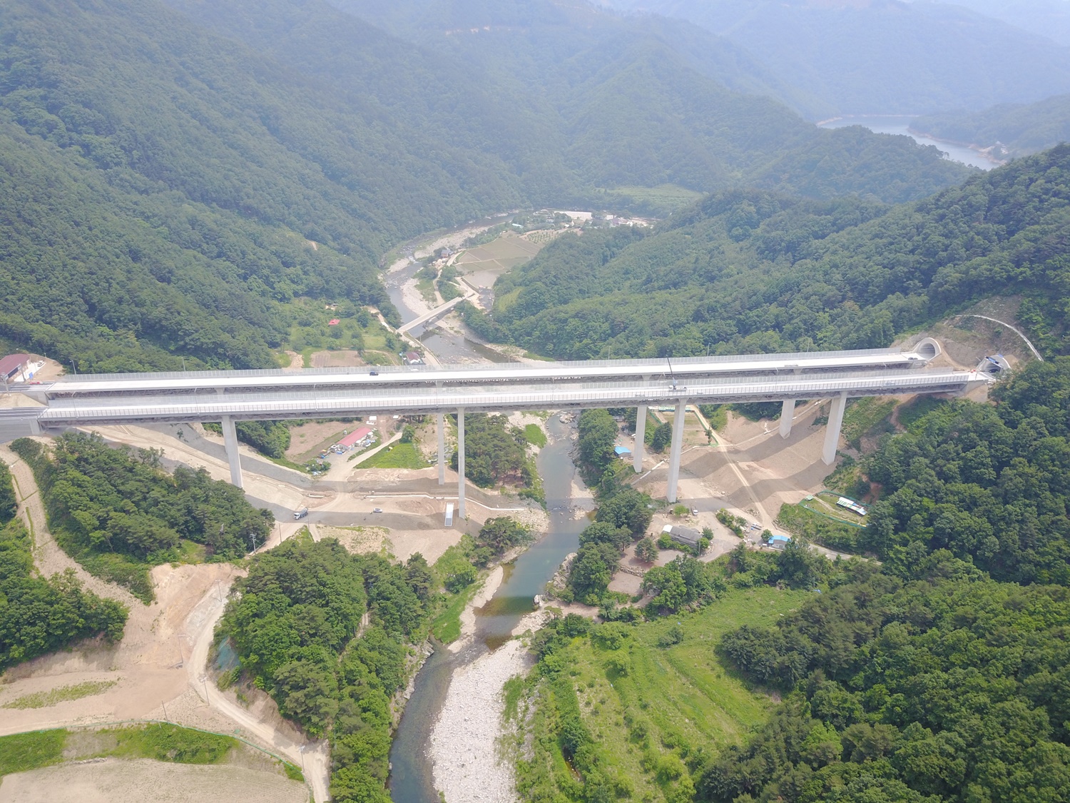 특히, PCT(Pre-stressed Composite Truss) 공법을 활용해 시공된 교량 중 국내 최장 길이(450.7m)인 공수전교는 개방형 트러스구조로 미관이 우수하며 교각이 최대 68.5m로 웅장함을 자랑합니다.